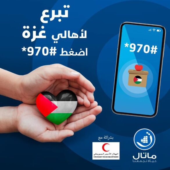 أطلقت شركة ماتال، بالتعاون مع الهلال الأحمر الموريتاني، حملة لجمع التبرعات لفائدة أهالي غزة خلال شهر رمضان المبارك. للمشاركة في هذا العمل التضامني و الإنساني، يكفي الضغط على الرمز #970* من أي رقم ماتال و اختيار المبلغ المزمع التبرع به و الذي سيتم خصمه من الرصيد مع إمكانية إجراء هذه العملية عدة مرات من نفس الرقم. و ستقوم شركة ماتال بتحويل جميع التبرعات المتحصل عليها بالكامل إلى الهلال الأحمر لتلبية الاحتياجات الأساسية لأهالي غزة. و تعكس هذه المبادرة الإنسانية، التي أطلقتها شركة ماتال بشكل حصري، قيم التضامن التي تميز أعمالها في إطار سياستها الاجتماعية.