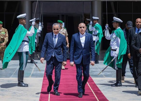 غادر الرئيس محمد ولد الشيخ الغزواني، صباح اليوم الخميس انواكشوط متوجها إلى بلدية النباغية التابعة لمقاطعة بوتلميت بولاية اترارزة، لتدشين الطريق الرابط بين بلدية النباغية وطريق الأمل.ويرافق رئيس الجمهورية وفد يضم كلا من:- المختار ولد أجاي، الوزير المكلف بديوان رئيس الجمهورية؛- محمد عالي ولد سيدي محمد، وزير التجهيز والنقل؛- صالح ولد دهماش، مكلف بمهمة برئاسة الجمهورية؛- الشيخ ولد بده، مستشار برئاسة الجمهورية؛- الحسن ولد أحمد، المدير العام لتشريفات الدولة.